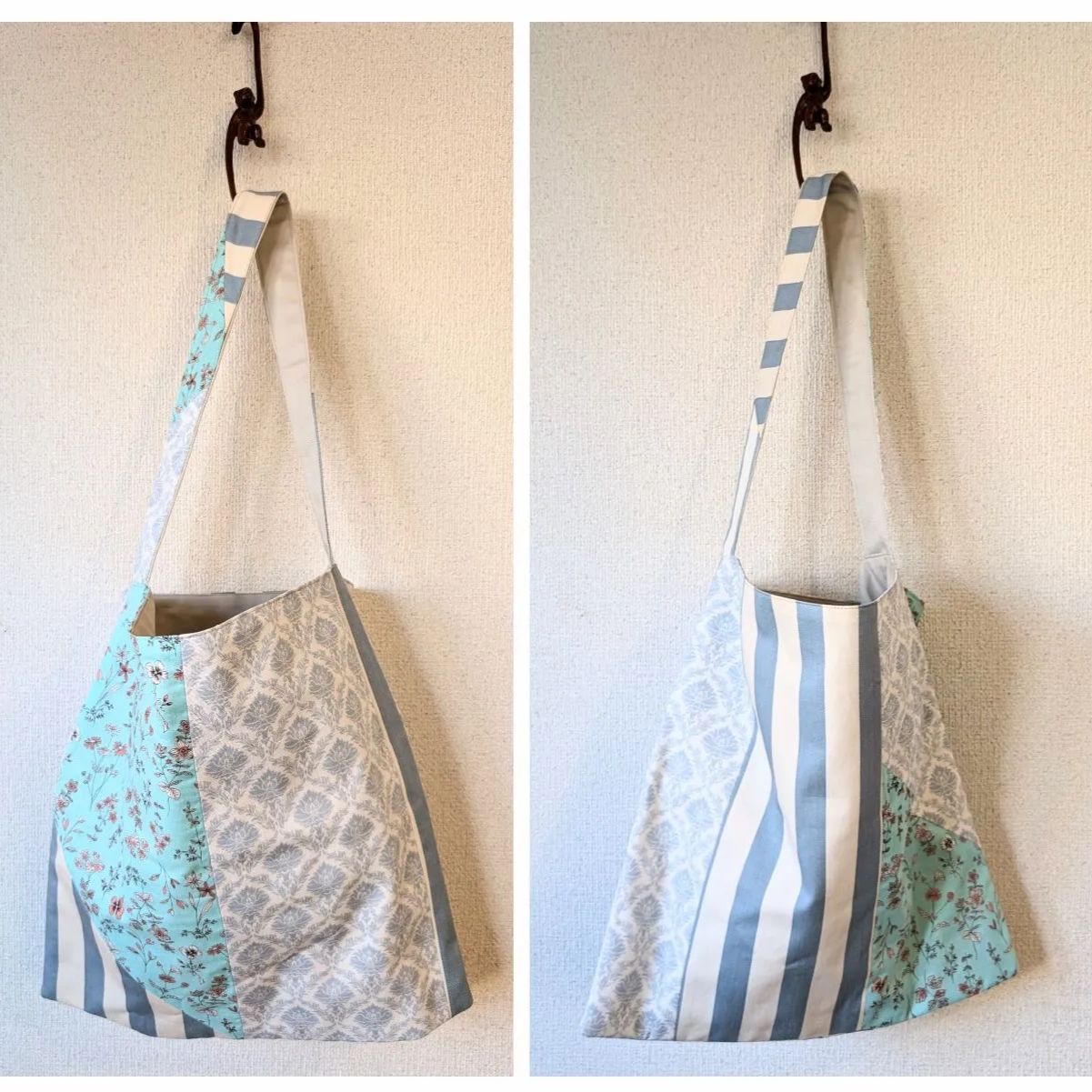 【1点もの】ワンショルダー ストライプ&花柄(ブルー)