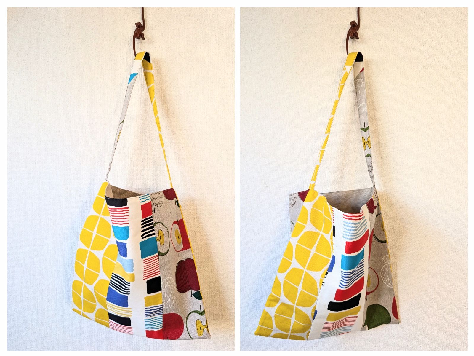 【1点もの】ワンショルダー トートバッグ 幾何学&アップル