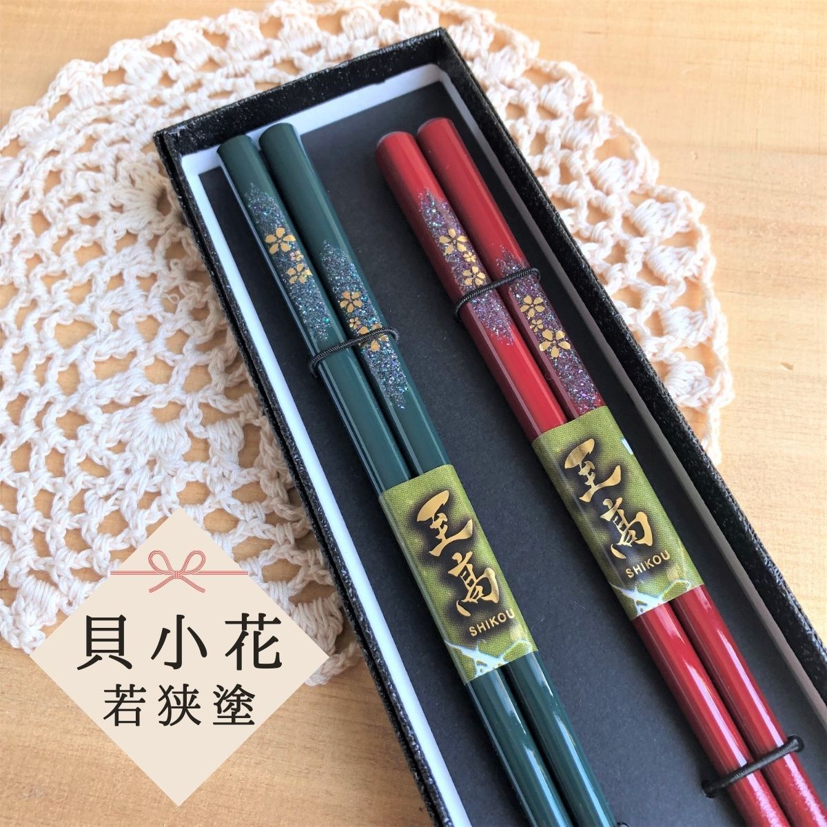 【新品高級箸】箸 夫婦箸 食洗機対応 若狭塗箸 ラッピング付 貝小花