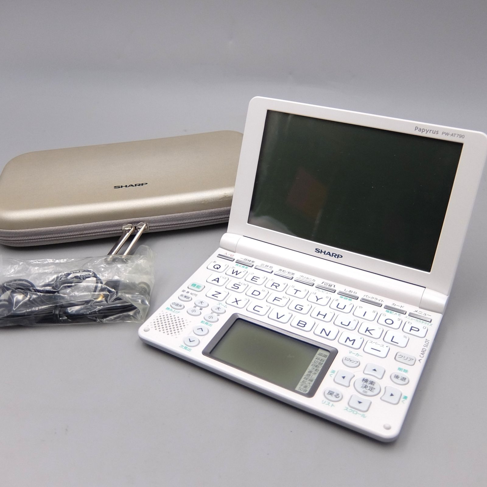 【美品】シャープ 音声対応・タイプライターキー配列電子辞書パールホワイト PW-AT790W ケース イヤホン付き