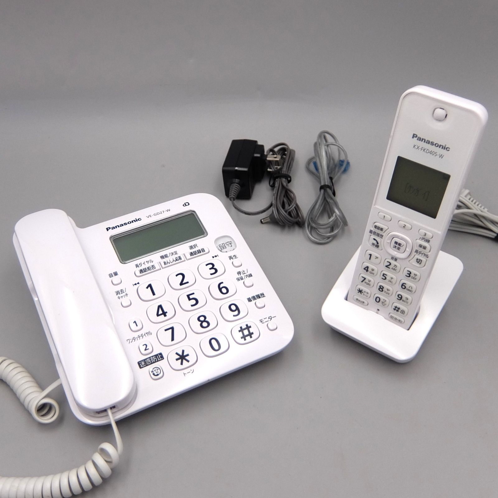 【美品】パナソニック コードレス 電話機 VE-GD27DL-W 子機1台付き ホワイト 固定電話 シンプル 迷惑電話対応