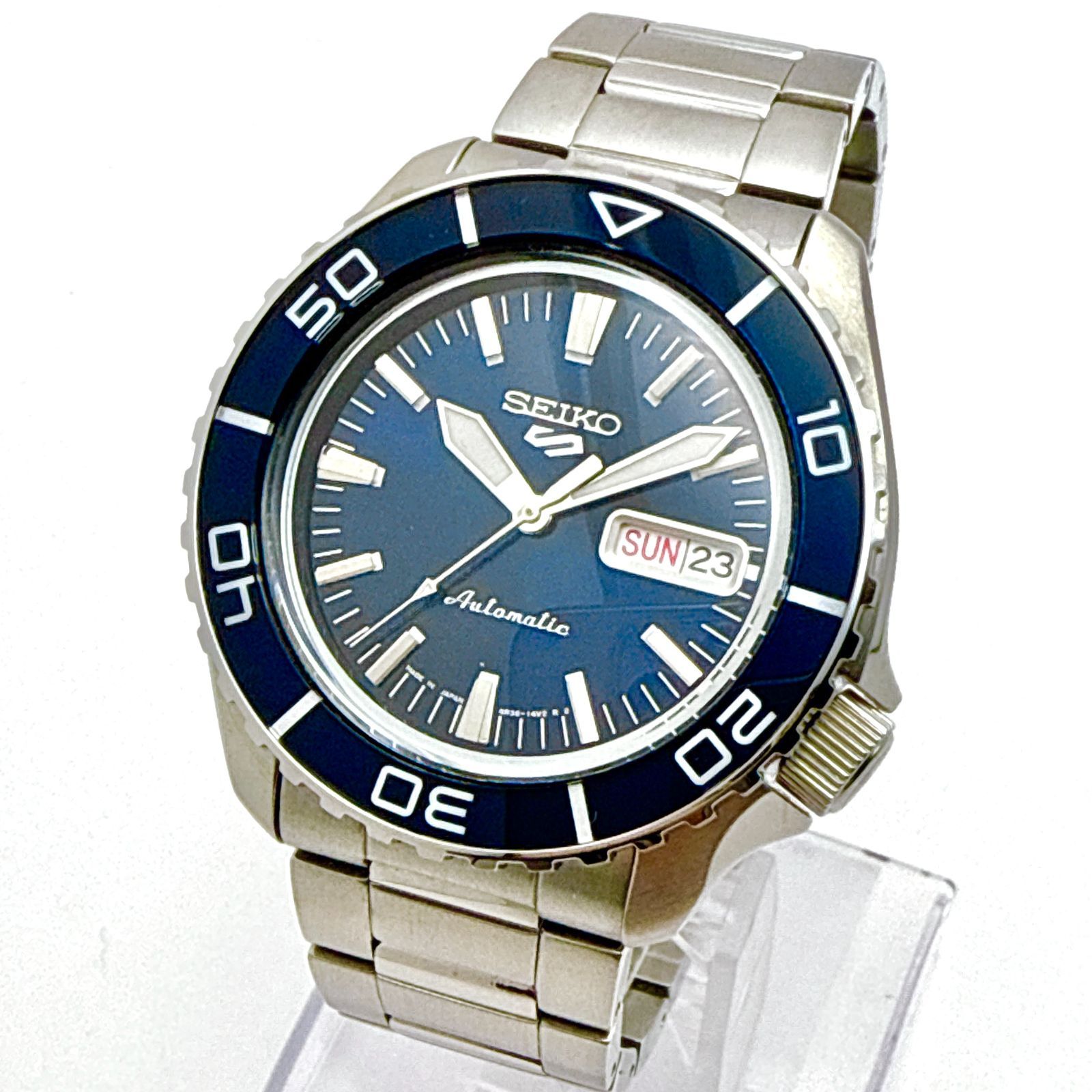 B142【極美品・箱付・コマあり】 SEIKO セイコー 5スポーツ SBSA259 ブルーベゼル ブルーダイアル シースルーバック 自動巻き機械式 メンズウォッチ