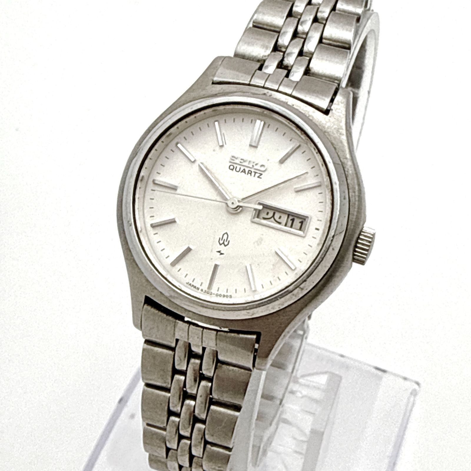 C150【稼働・1976年製・アンティーク・オリジナルベルト】 SEIKO QUARTZ シルバーダイアル デイデイト レディースウォッチ