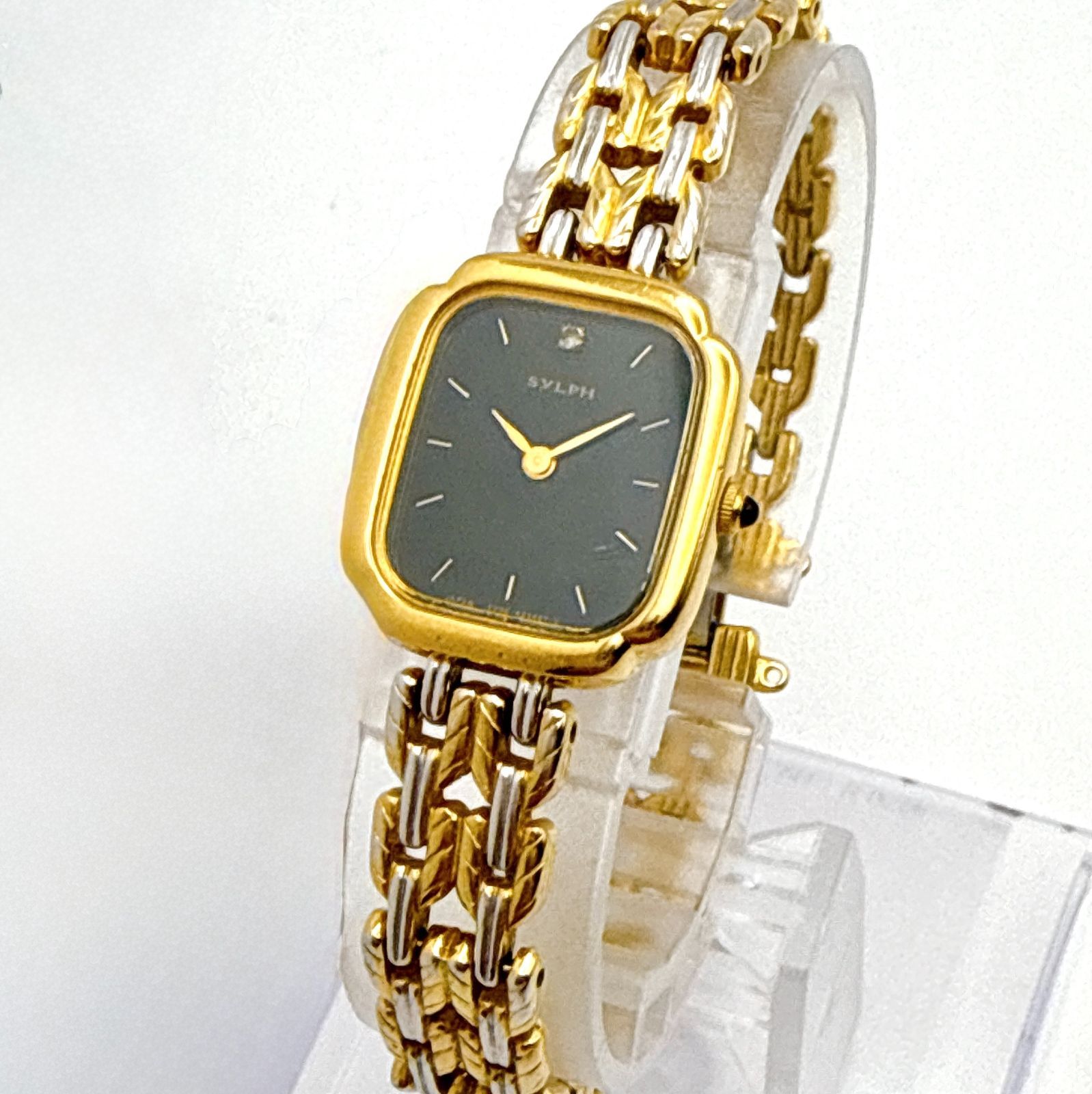 C152【アンティーク】 CITIZEN SYLPH シチズン シルフ ゴールドカラー レクタンギュラーケース ブラックダイアル レディースウォッチ