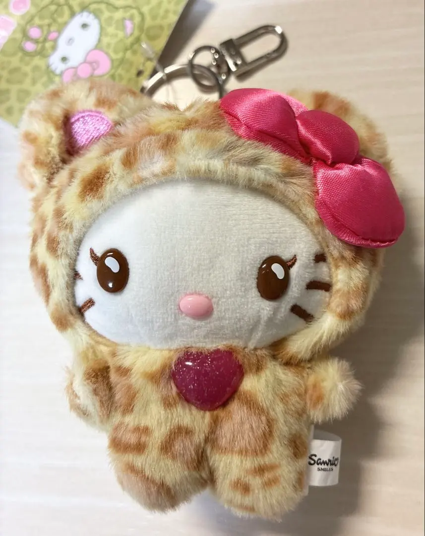 タグ付き ヒョウ柄キティ ギャルクマピンク ストラップ キーホルダー 豹柄