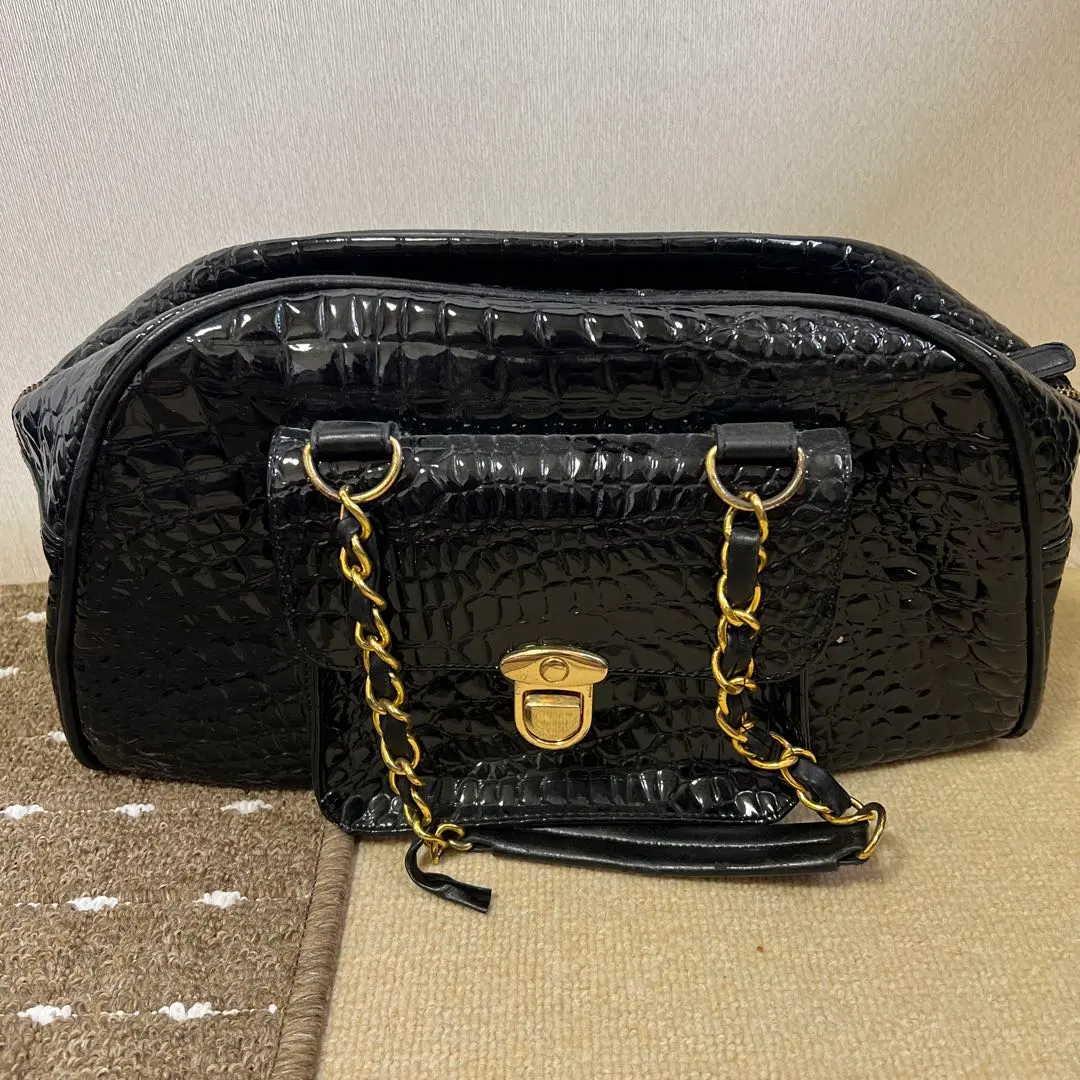 美品!クロコダイルテクスチャー ブラックバッグ