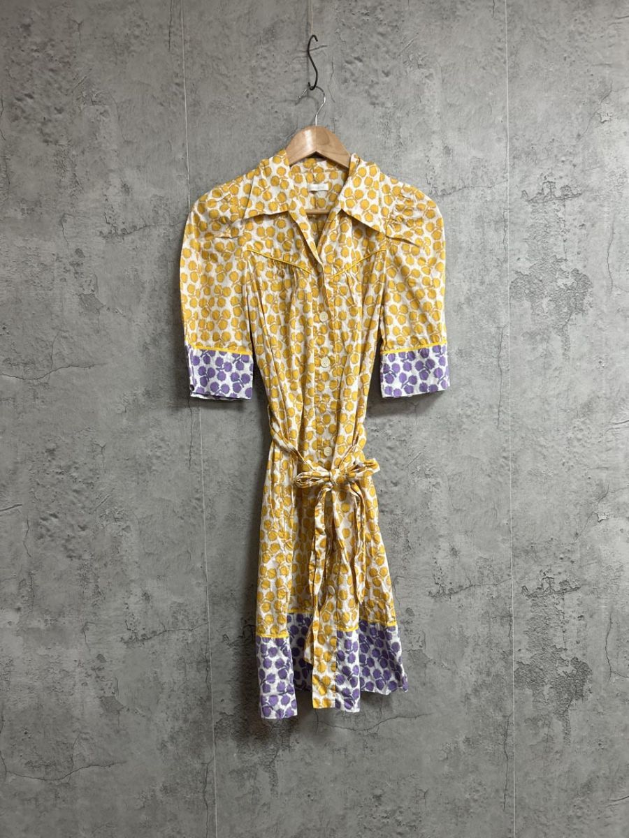 キャシャレル Cacharel 総柄 ウエスト紐 Aライン ワンピース sizeF/黄 ■◇ レディース