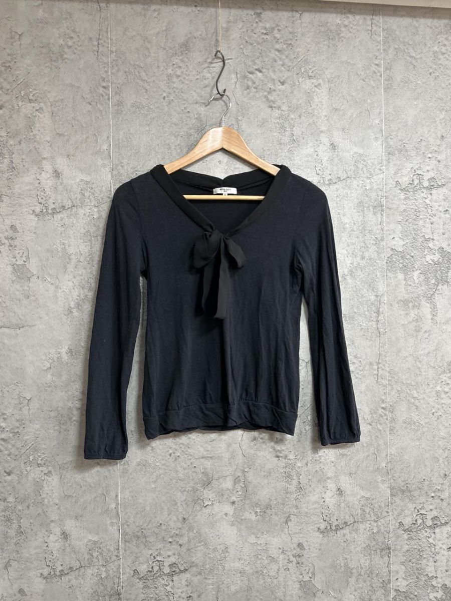 NATURAL BEAUTY BASIC ナチュラルビューティーベーシック リボン カットソー sizeM/黒 ■◇ レディース