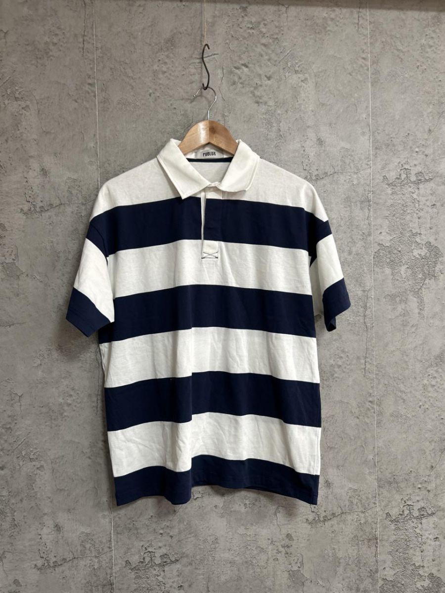 PUBLUX パブリュクス ボーダー オーバーサイズ ポロシャツ sizeF/白x紺 ■◆ メンズ
