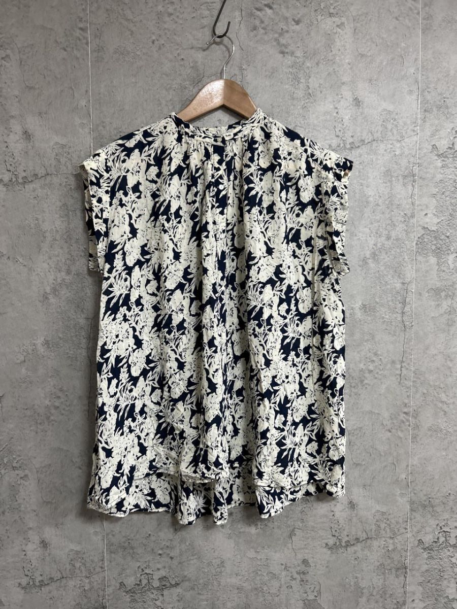 美品 liflattie ships タグ付 リフラティ シップス 花柄 ノースリーブ ブラウス シャツ sizeF/白x紺 ■◆ レディース