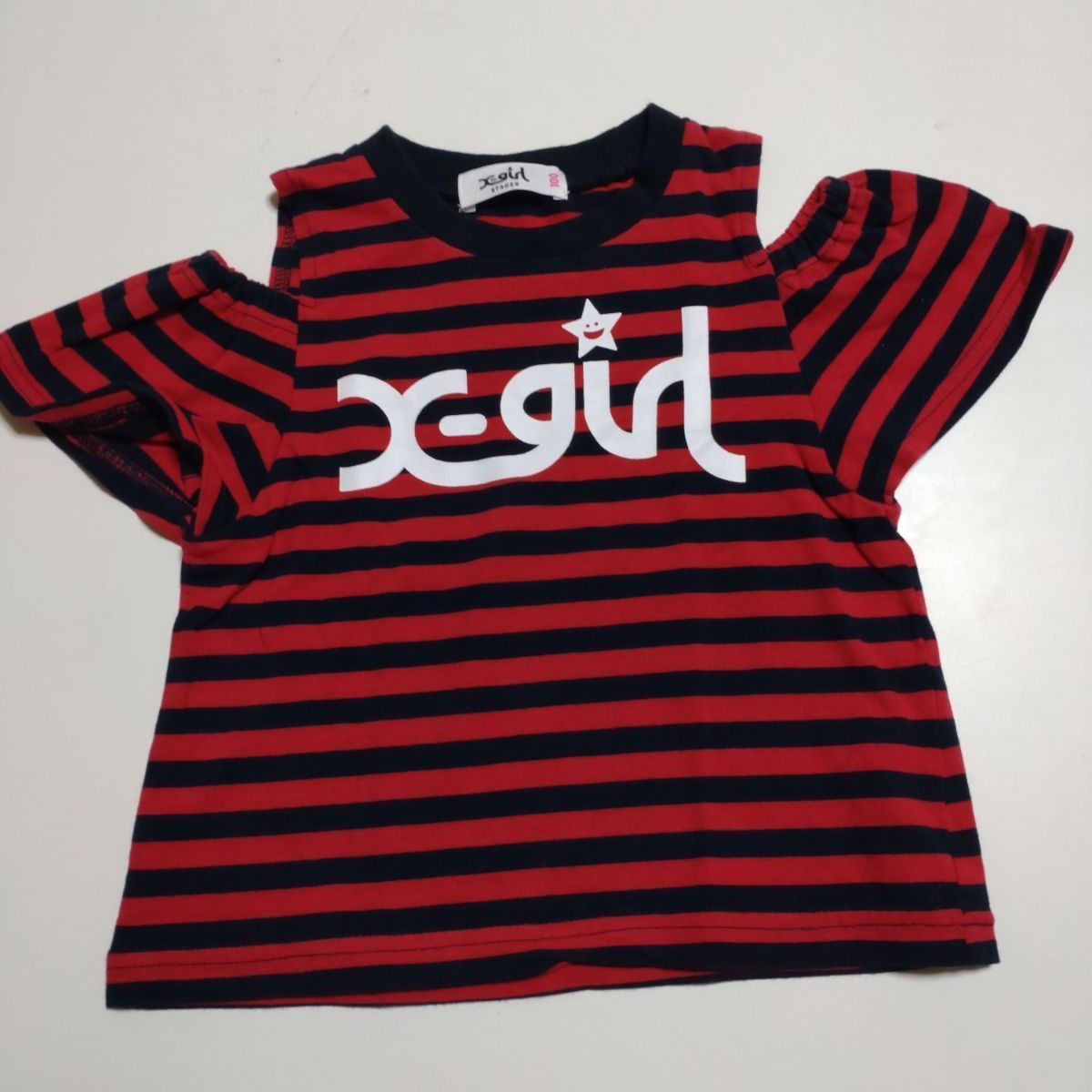 444 100cm x-girl女の子オープンショルダーボーダーTシャツ