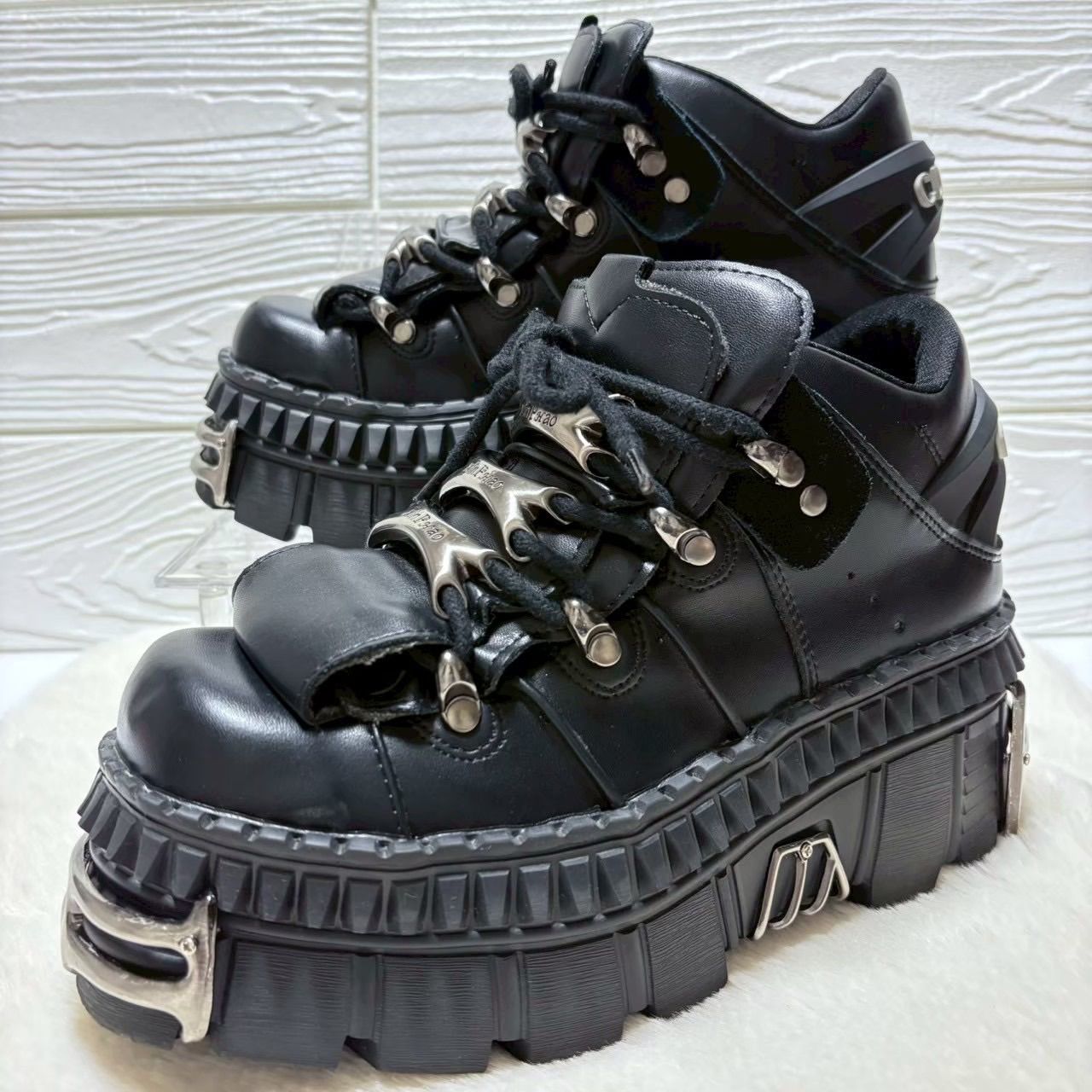 厚底スニーカー 23.5cm ブラック ボリュームソール メタル装飾 ストリート 韓国系 Y2K 地雷系 約8cmヒール