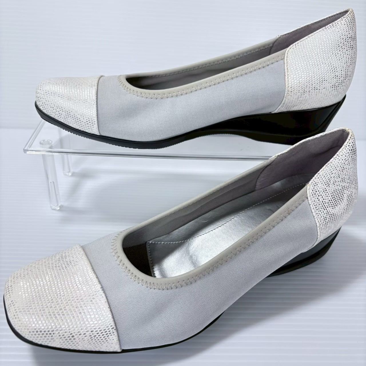 fitfit フィットフィット 撥水 バイカラー パンプス ライトグレー 25.5cm