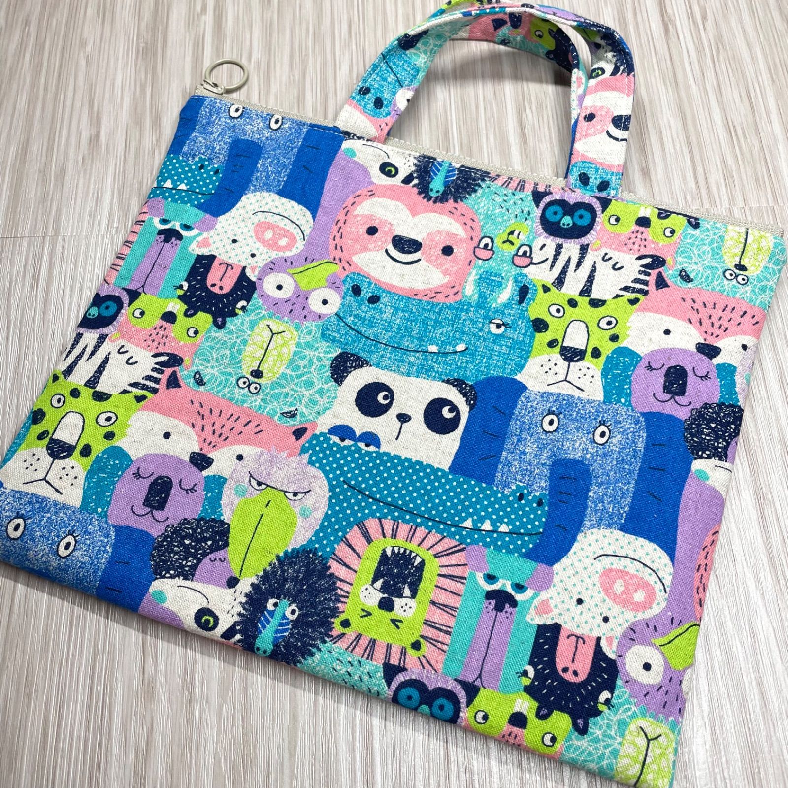 ファスナー付き ミニトートバッグ アニマル柄 フラットタイプ ポケット付き ☆ ハンドメイド