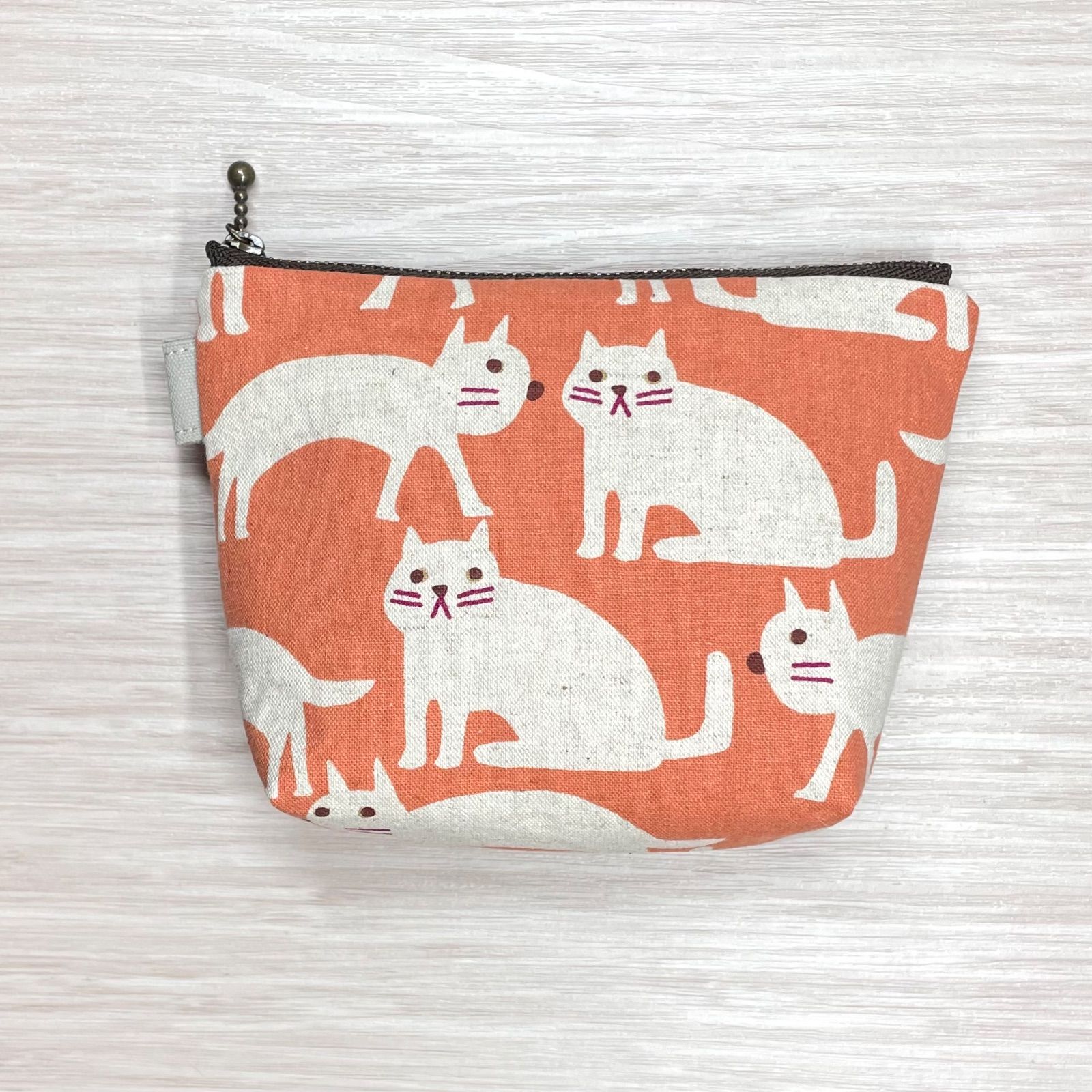 ねこのポーチ オレンジ 北欧柄 小物入れ 化粧ポーチ ファスナーポーチ ☆ ハンドメイド