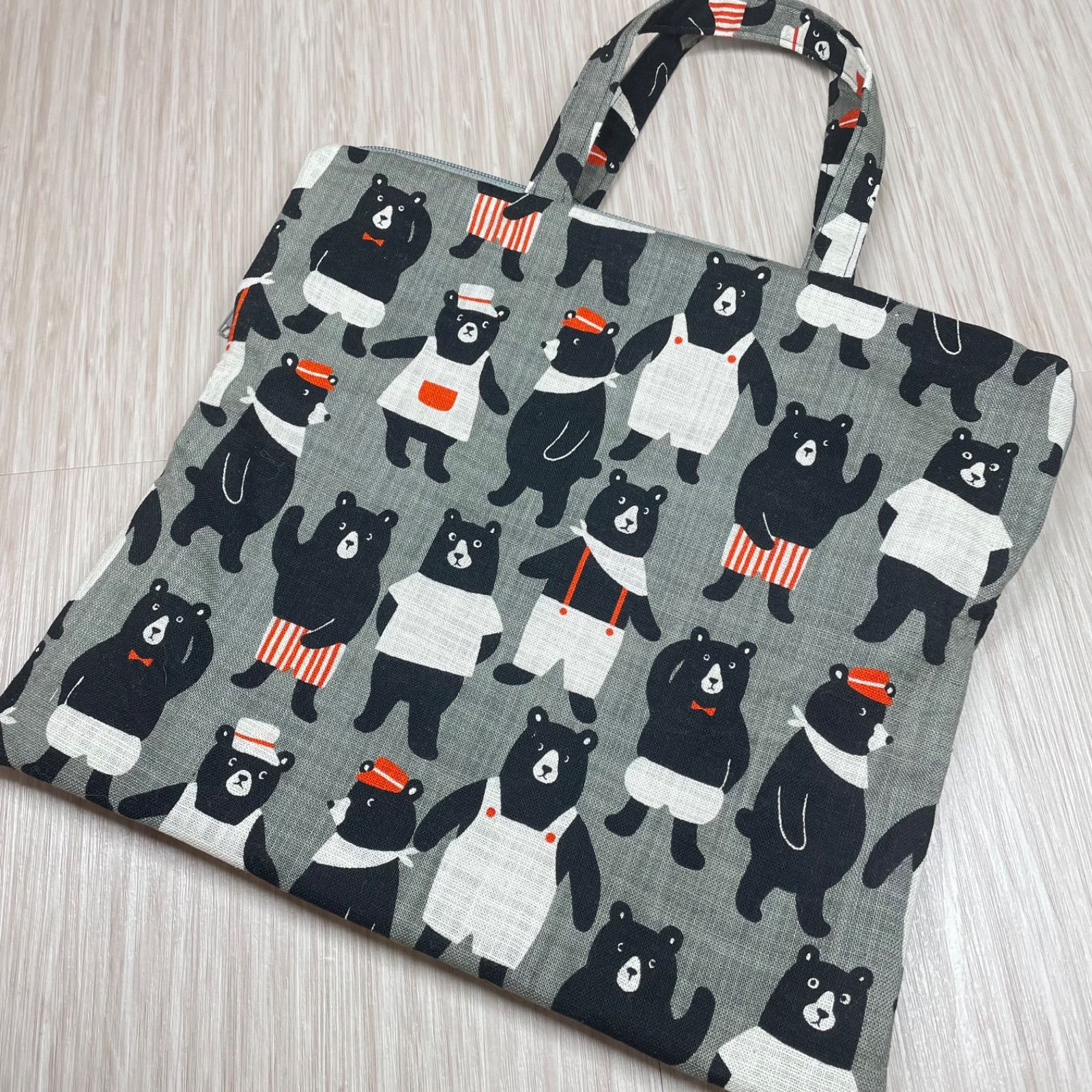 トートバッグ ファスナー付き くま柄 くまさん ☆ ハンドメイド
