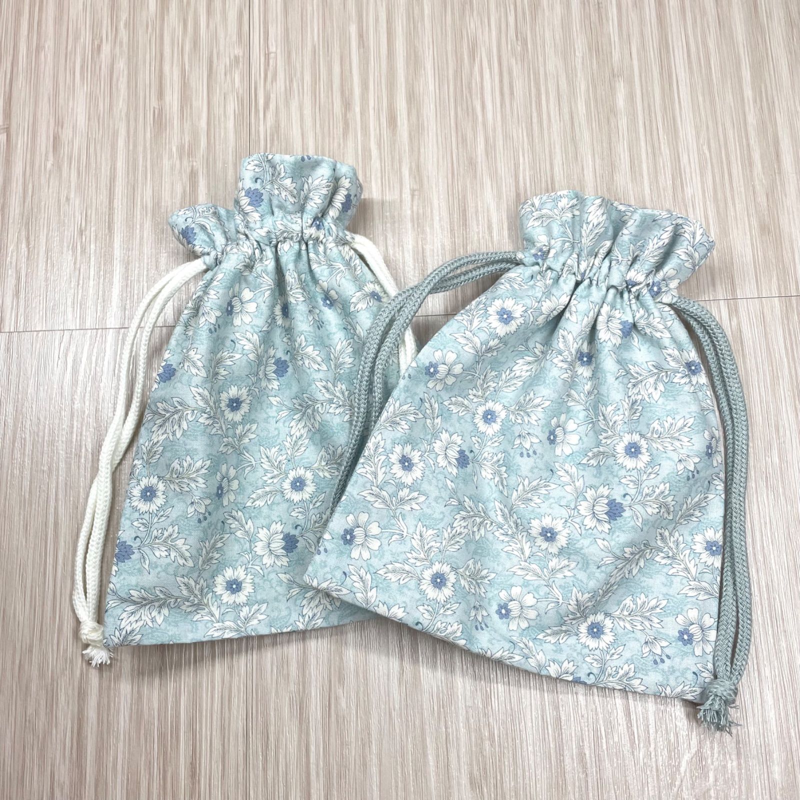 コップ袋 巾着袋 2枚セット 小物入れ 花柄 サックス ☆ ハンドメイド