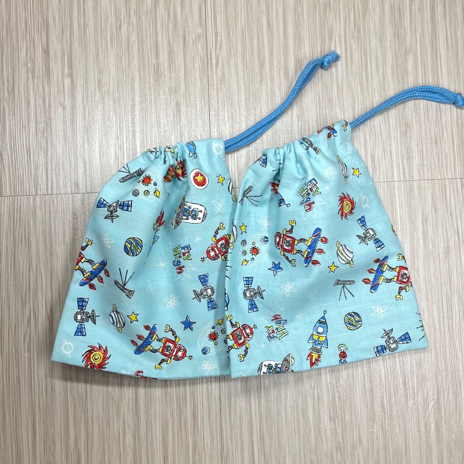 コップ袋 2枚セット 宇宙柄 巾着袋 ブルー ロボット ロケット ☆ ハンドメイド 片紐