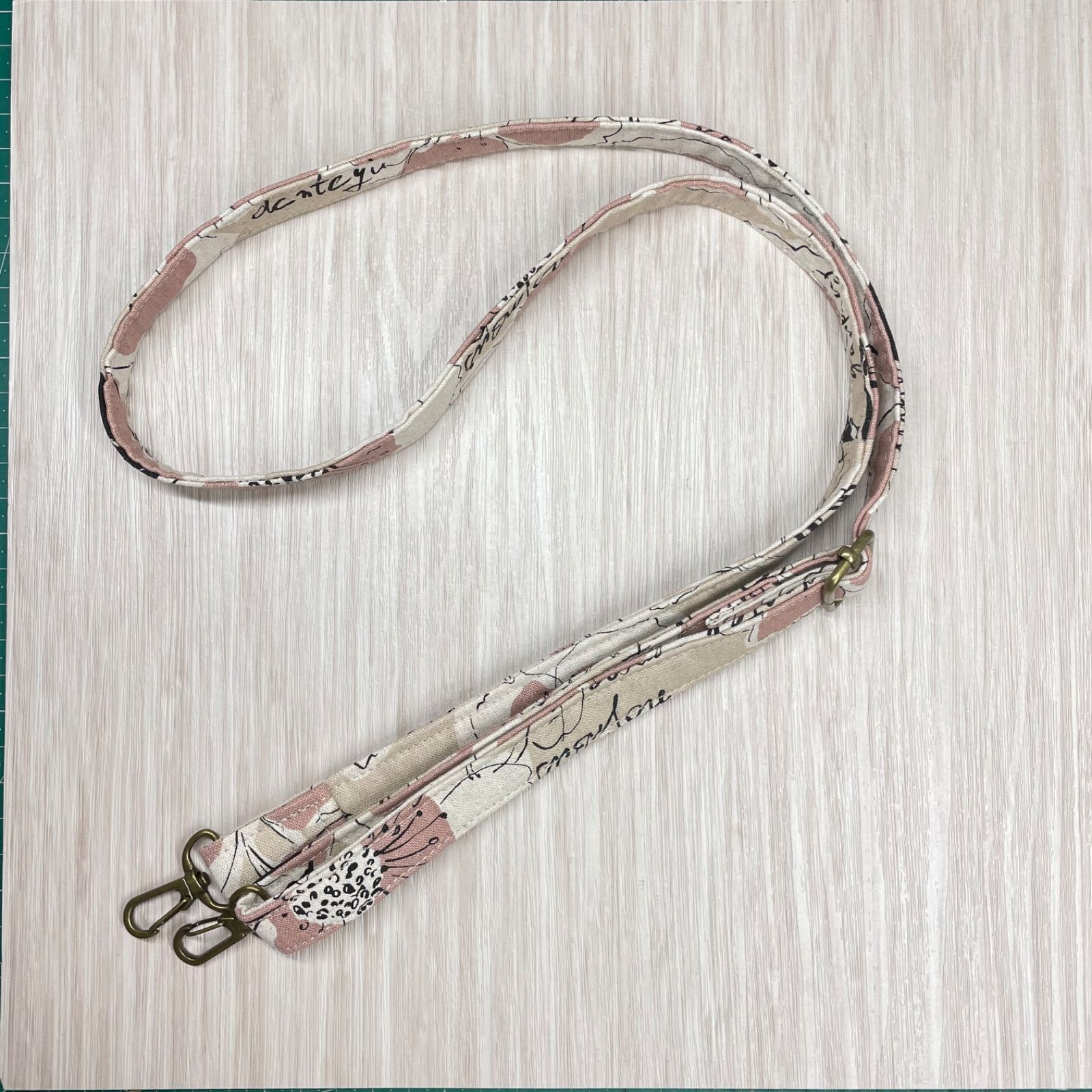 ショルダーストラップ 花柄 ベージュ ピンク 両サイドナスカン付き 調整可能 ☆ ハンドメイド 全長約64〜117㎝