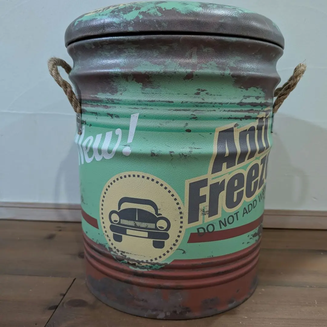 アンティークビンテージ調ドラム缶スツール収納ボックス付きケース椅子