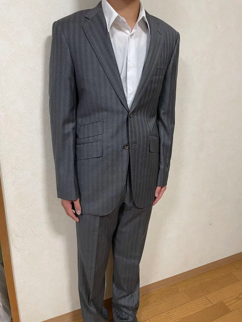 【美品】タケオキクチ セットアップスーツ グレーストライプ 結婚式や成人式に最適