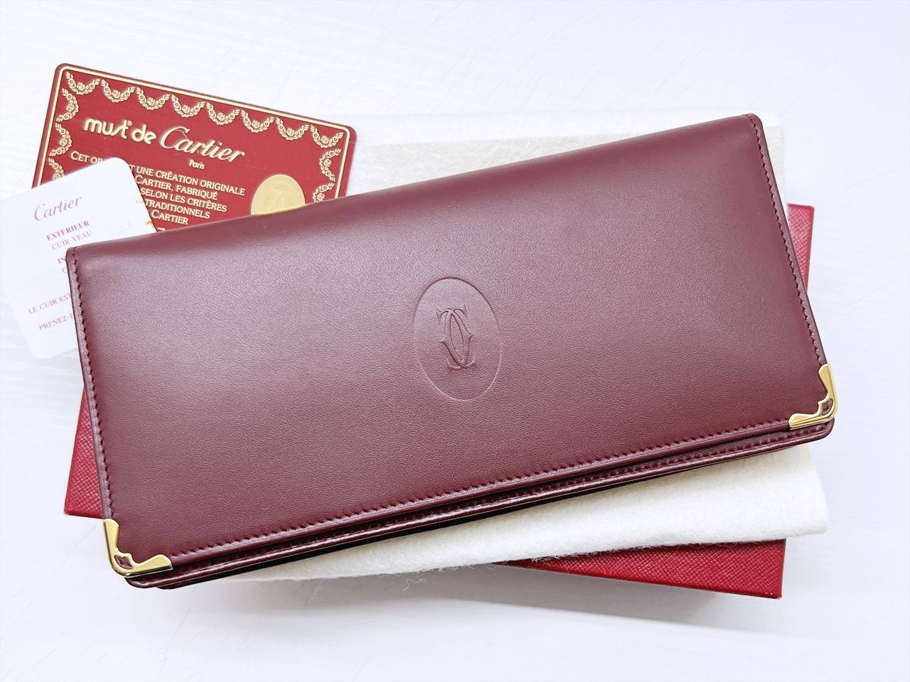 未使用保管 美品 Cartier カルティエ マスト 小銭入れ付き 二つ折り 長財布 ボルドー ゴールド L3000466