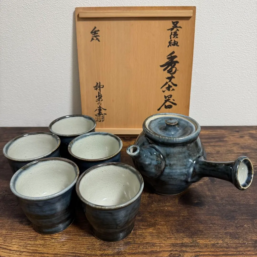 【未使用】呉須 茶器セット 急須 湯呑 昭和レトロ