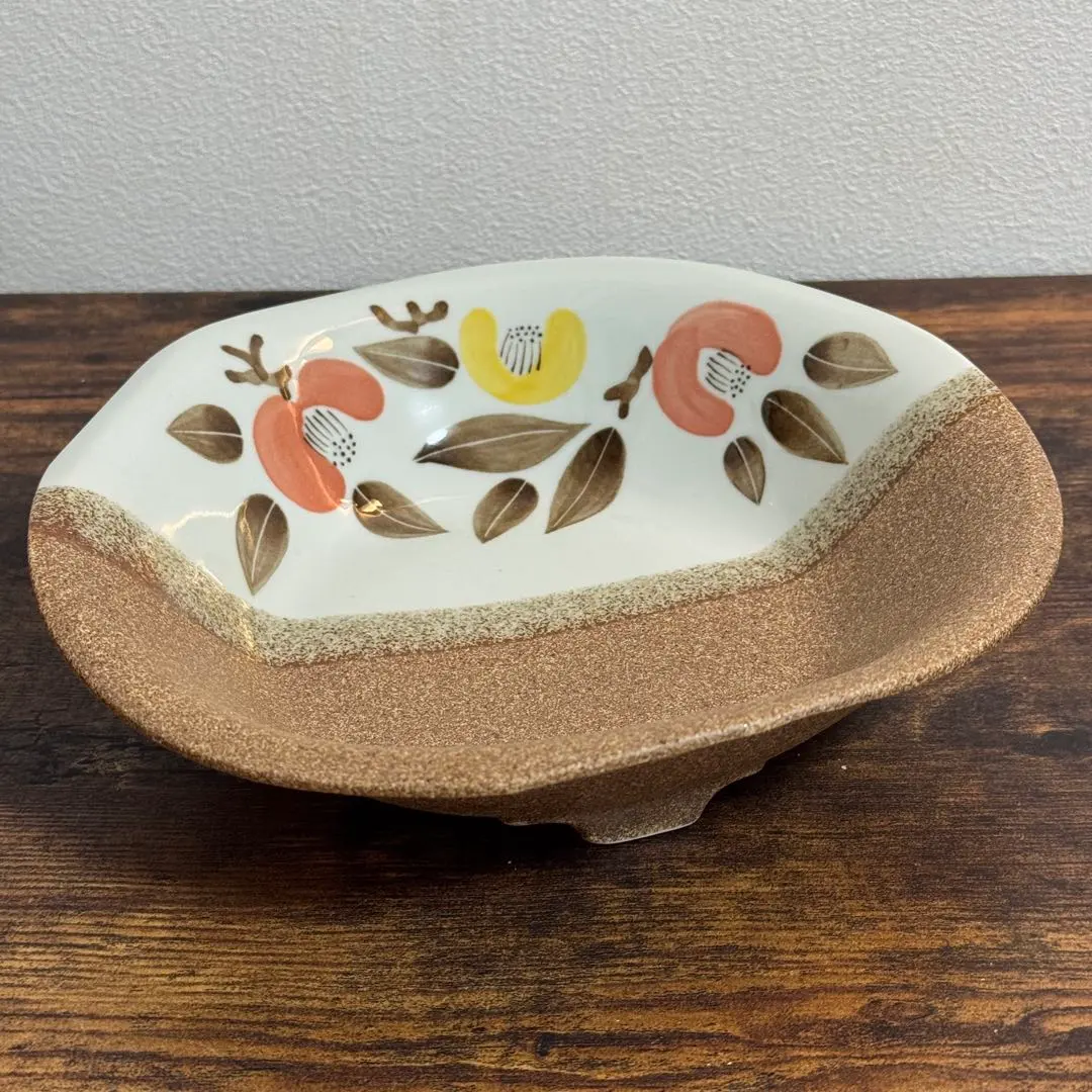 【未使用】中皿 深皿 花 陶器 昭和レトロ