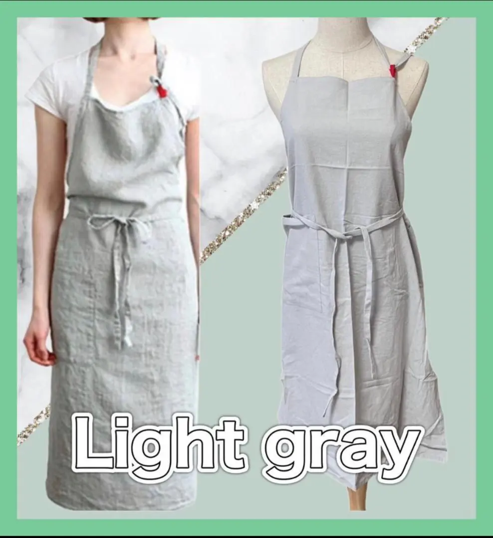 綿麻エプロン リネンシンプル おしゃれカフェ料理 男女 ライトグレー
