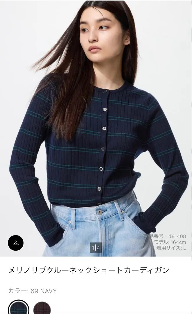 メリノリブクルーネックショートカーディガン ネイビー XL