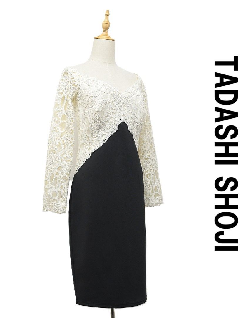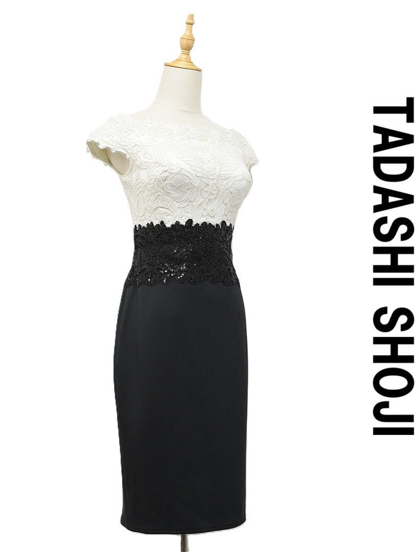 D596/美品 TADASHI SHOJI ドレス ひざ丈ワンピース 0 白 黒