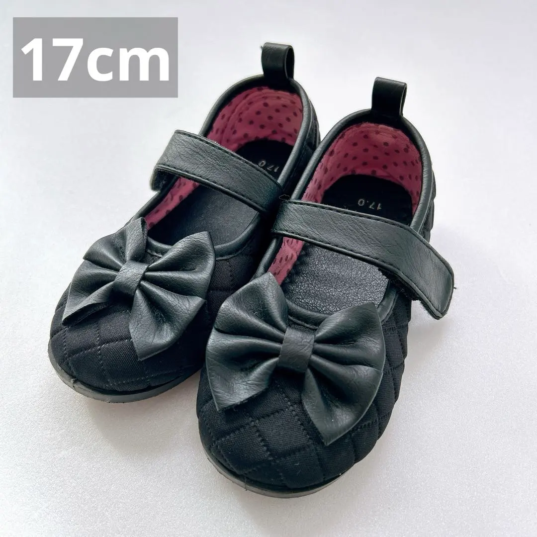 17.0cm フォーマルシューズ 黒 リボン パンプス 冠婚葬祭 結婚式 発表会