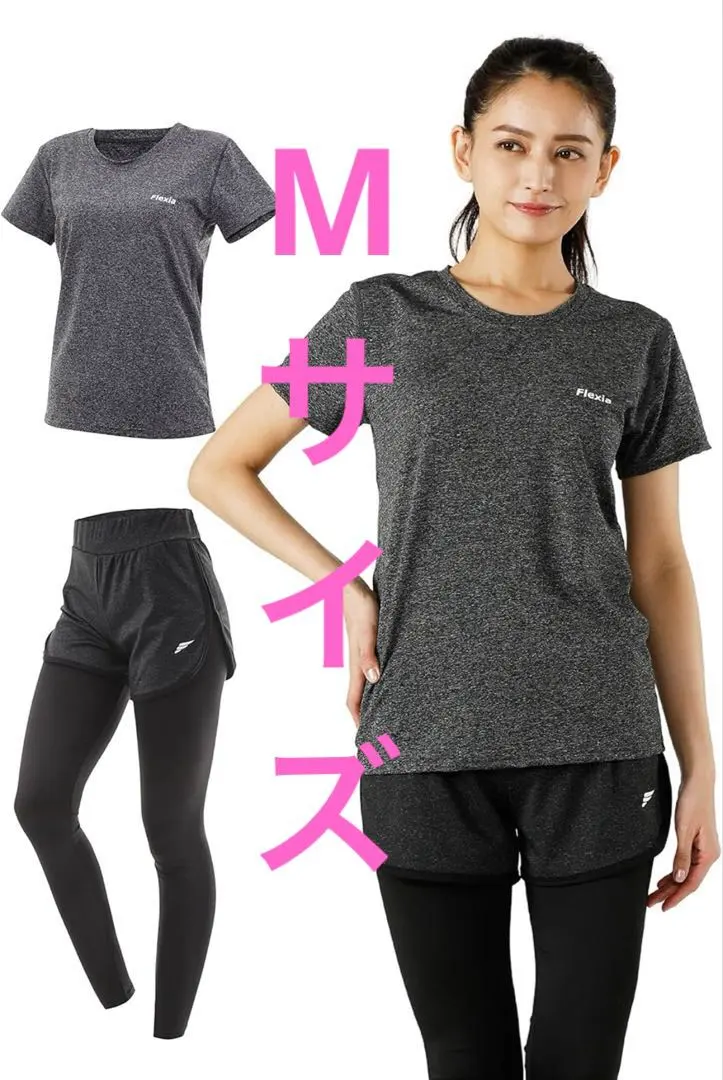【美品】Mサイズ グレー Tシャツとレギンス 上下セット ヨガ