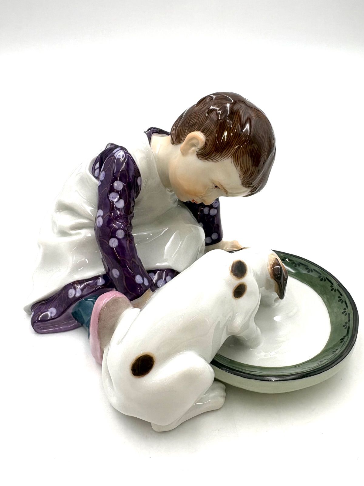 Meissen マイセン ヘンチェルの子供シリーズ ミルクを飲む犬と子供 少女と犬 フィギュリン 置物 300体限定