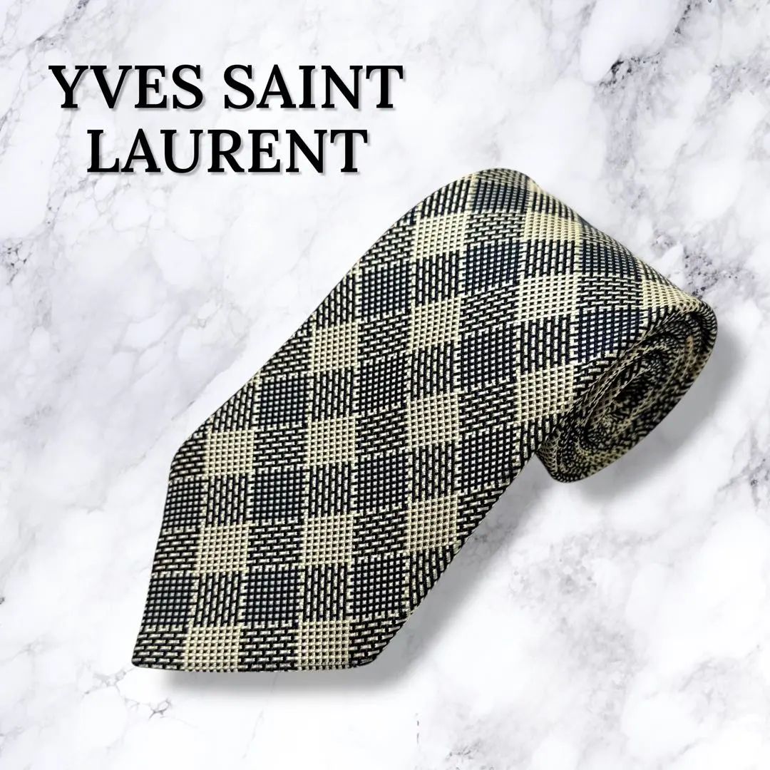 【極美品】YSL イヴサンローラン ネクタイ 高級シルク チェック柄 日本製