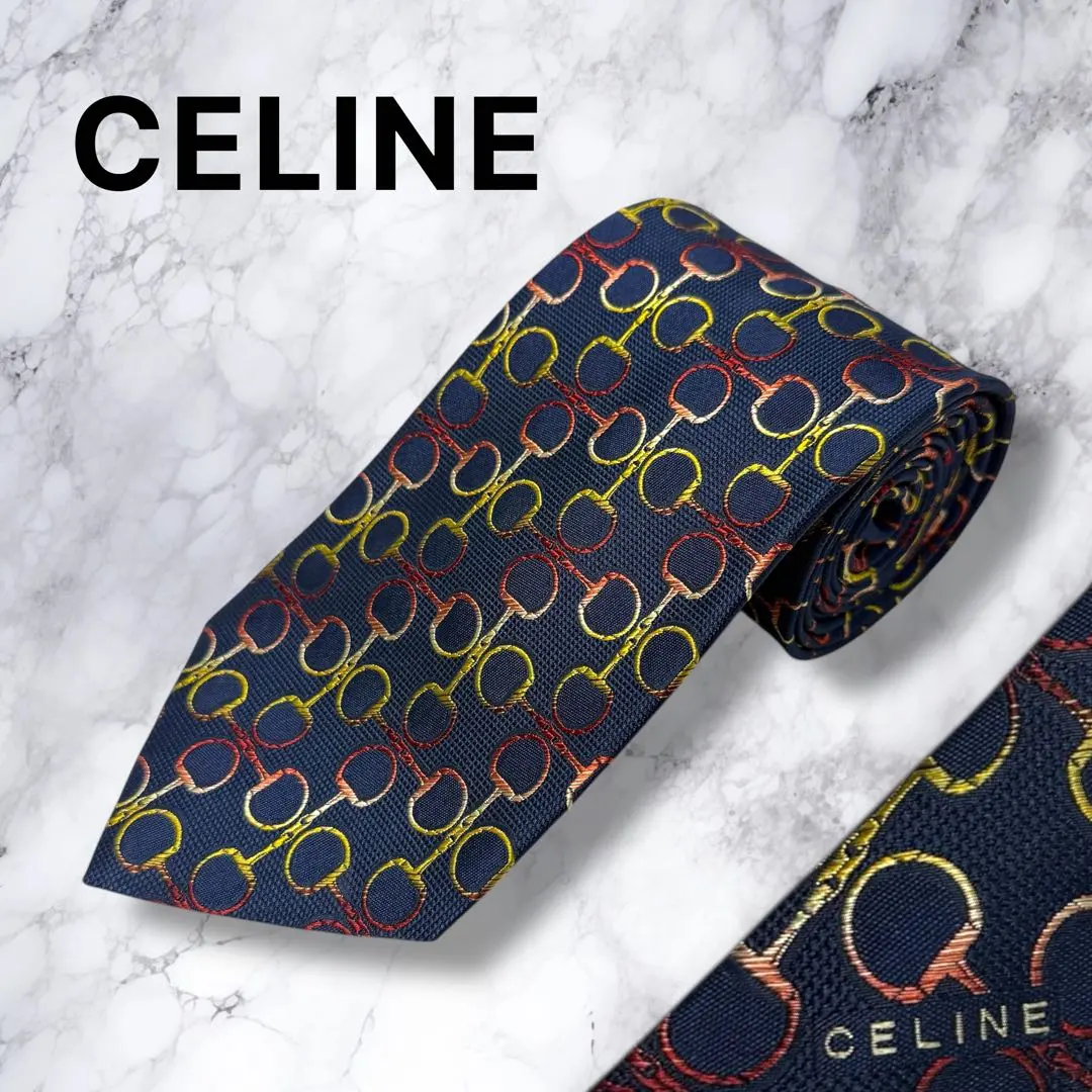 【極美品】CELINE セリーヌ ネクタイ シルク100% ビット柄 ネイビー
