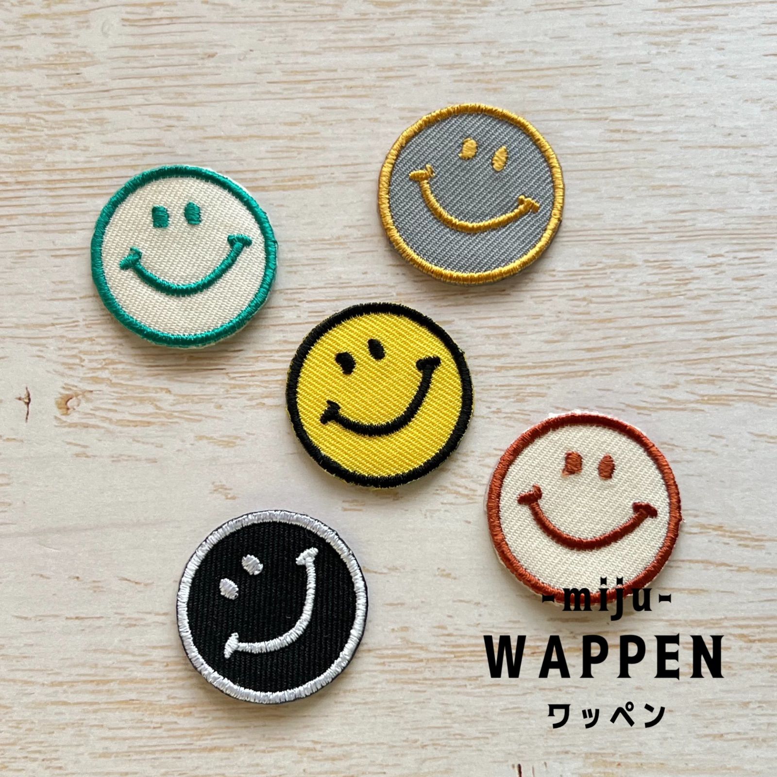 【ワッペン5枚】スマイル ニコちゃん アイロン刺繍ワッペン 5色