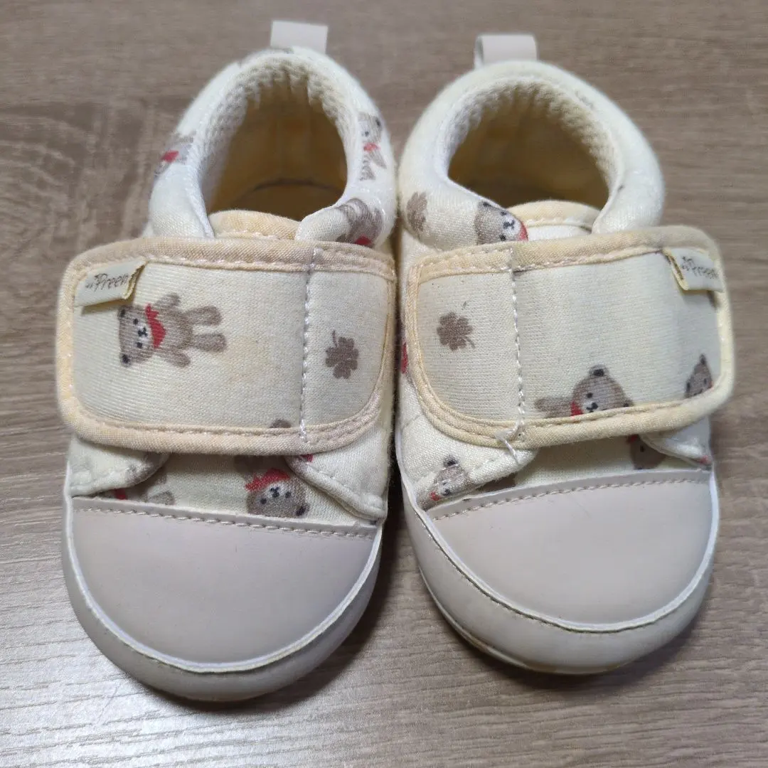 クマ柄クリーム色ベビーシューズ12cm室内履き