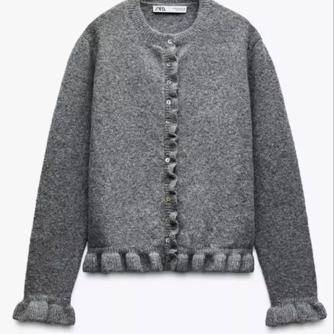ZARA グレー フリルボタン カーディガン暖かい完売着痩せニット