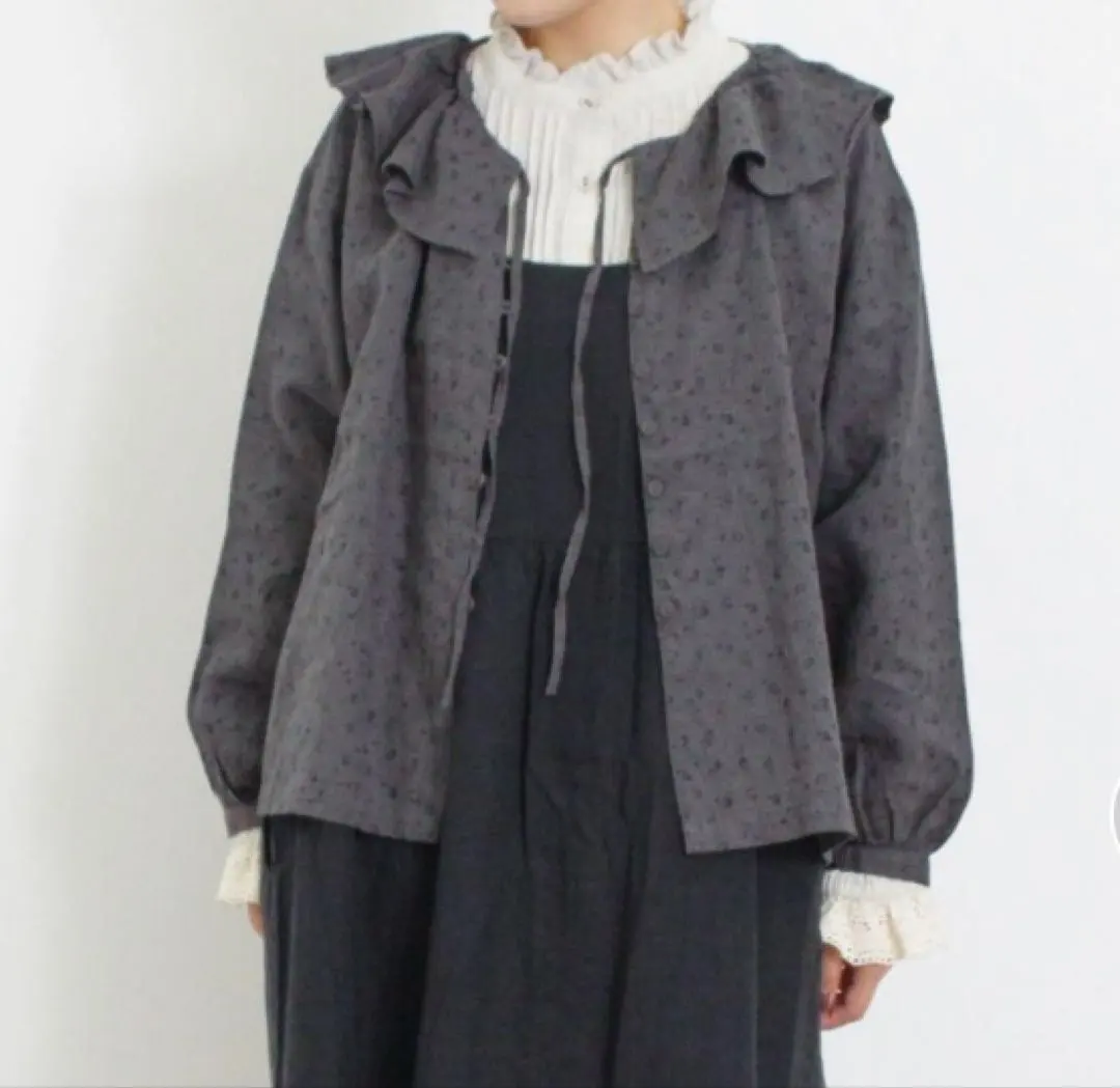 サマンサモスモス スローリネン柄アソートフリルブラウス