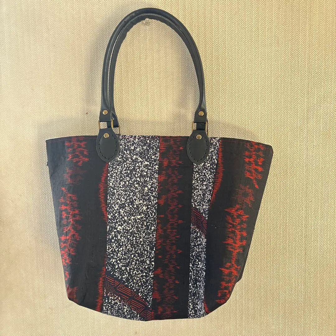 着物生地トートバッグ 黒と赤の模様 着物リメイク品