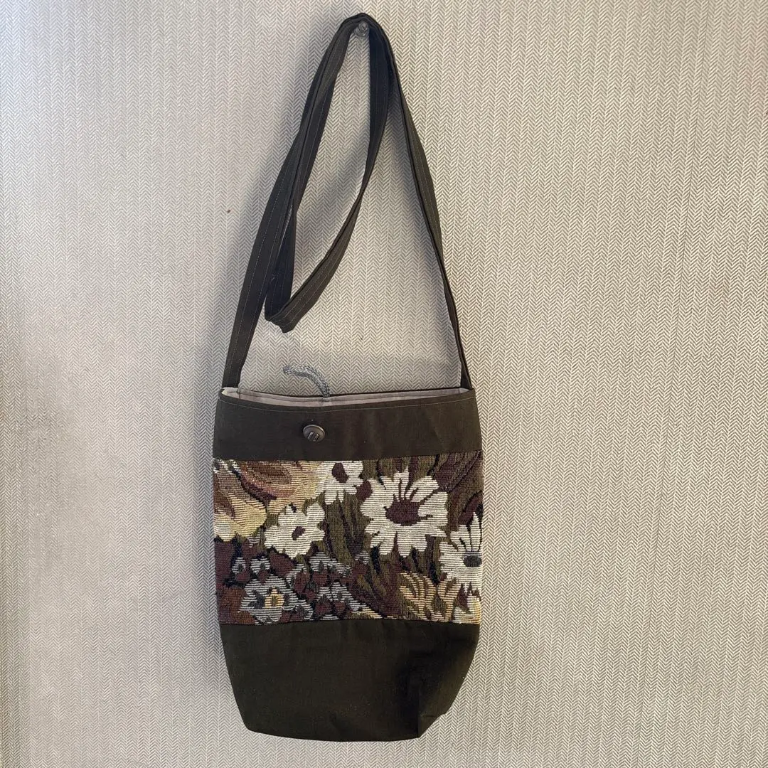 花柄刺繍 ダークグリーン ショルダーバッグ ハンドメイド品
