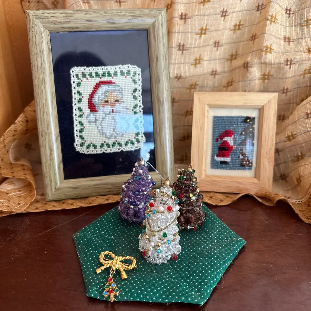 クリスマスツリーオブジェとアート作品セット クリスマス用(ビーズ作品)
