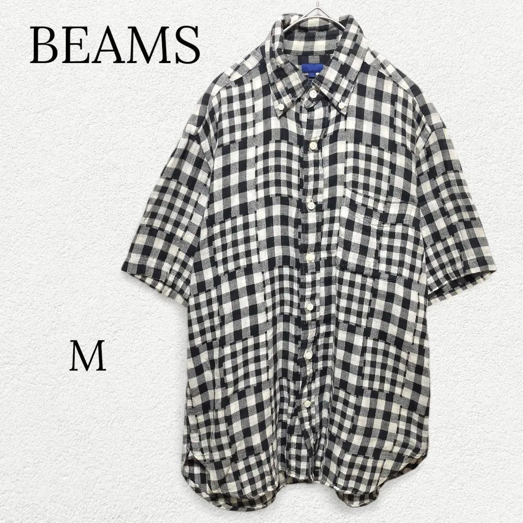 【ビームス】ギンガムチェックシャツ 半袖 トップス コットン 綿 ブラック M