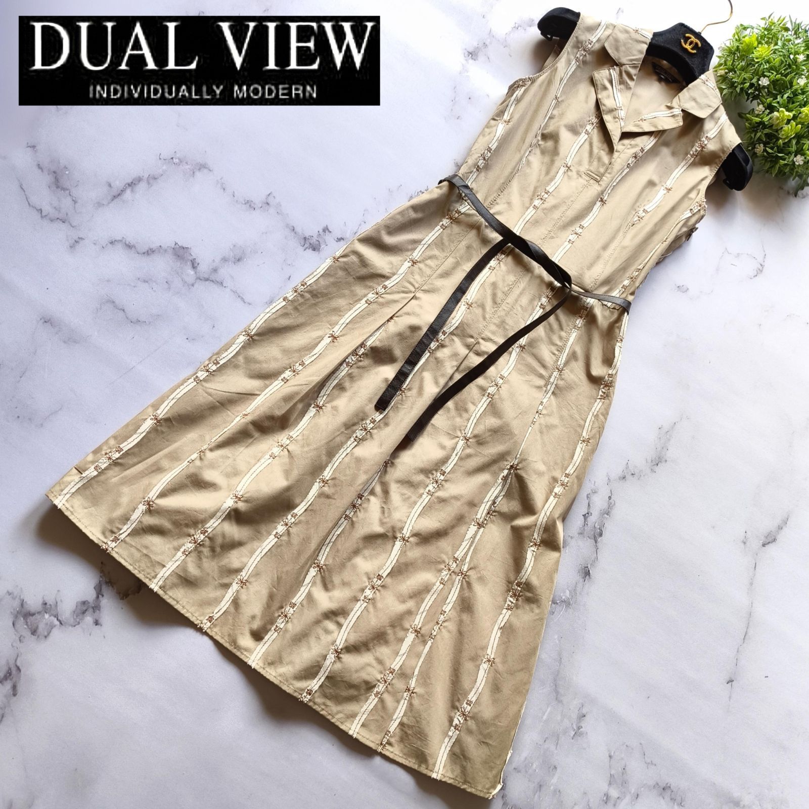 DUAL VIEW 花柄刺繍 シャツワンピース ロング ベージュ フレア 40