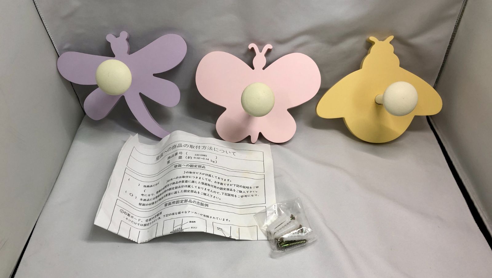 *未使用品* 木製壁掛けフック ”蝶々・とんぼ・てんとう虫” 3個セット ねじ止め M2218