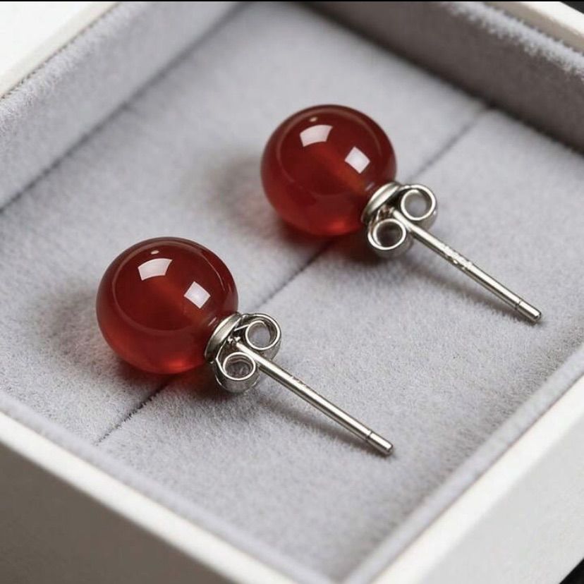 カーネリアン 一粒 スタッドピアス スターリングシルバー925
