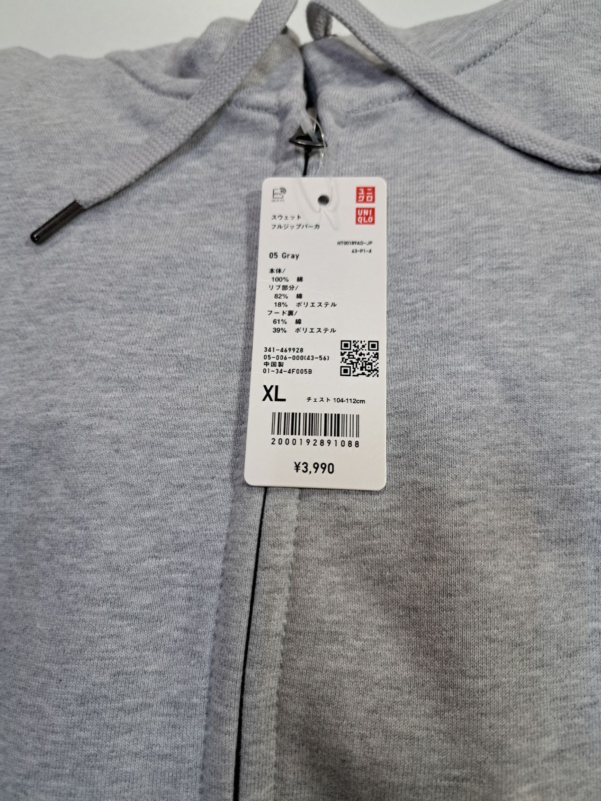 ユニクロ スウェットフルジップパーカー グレー XL 未使用