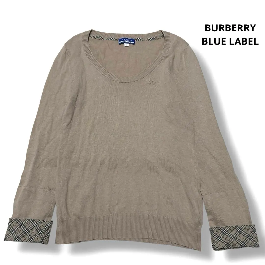 バーバリーブルーレーベル 袖チェック コットン セーター ベージュ ホースロゴ