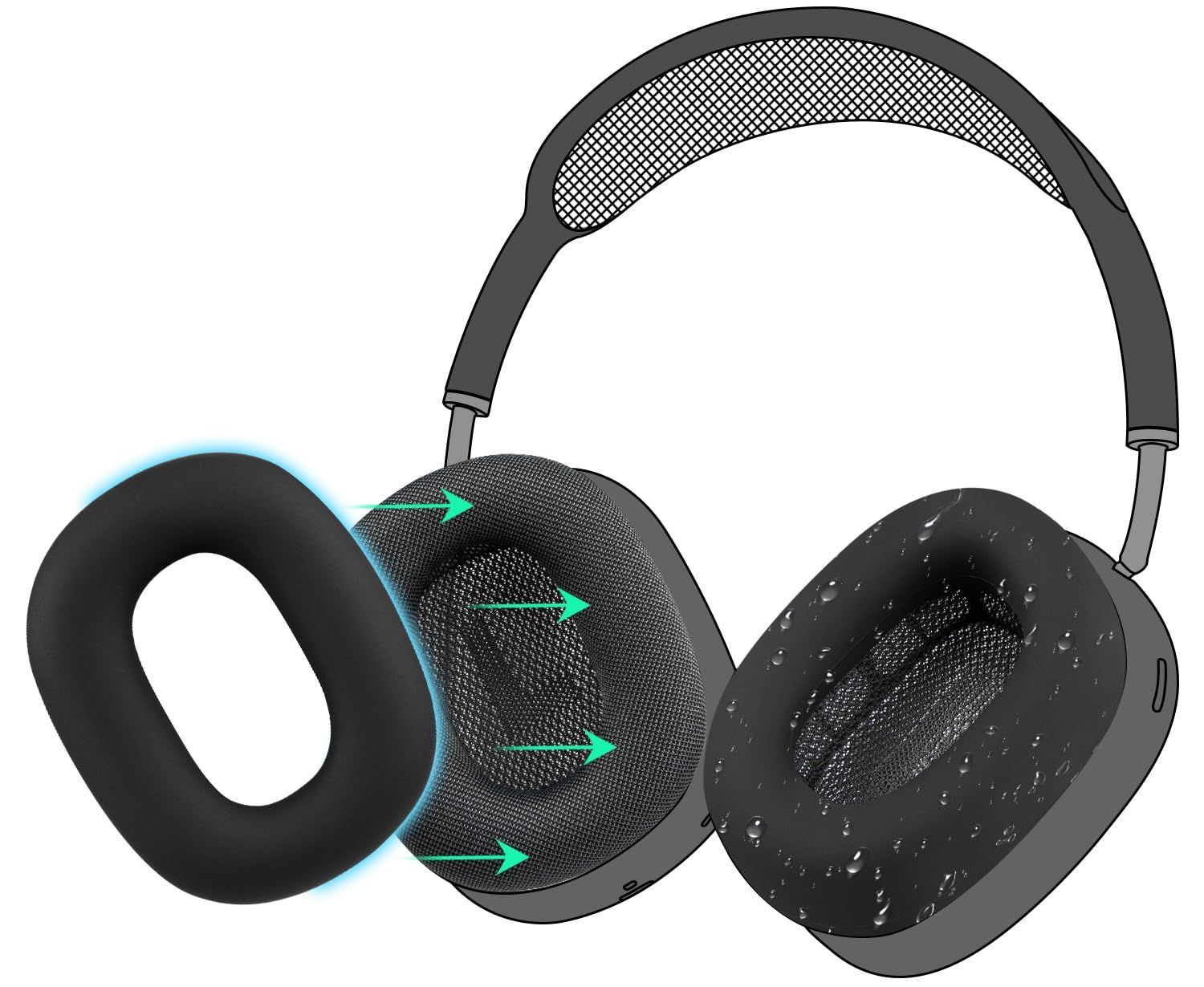 SOULWIT イヤーパッド カバー ケース for AirPods Max 用 汗対策シリコンイヤーカバー 簡単クリーニング 保護ケース 音質劣化なし 防塵 ジムでのエクササイズに快適フィット (ブラック-1ペア)
